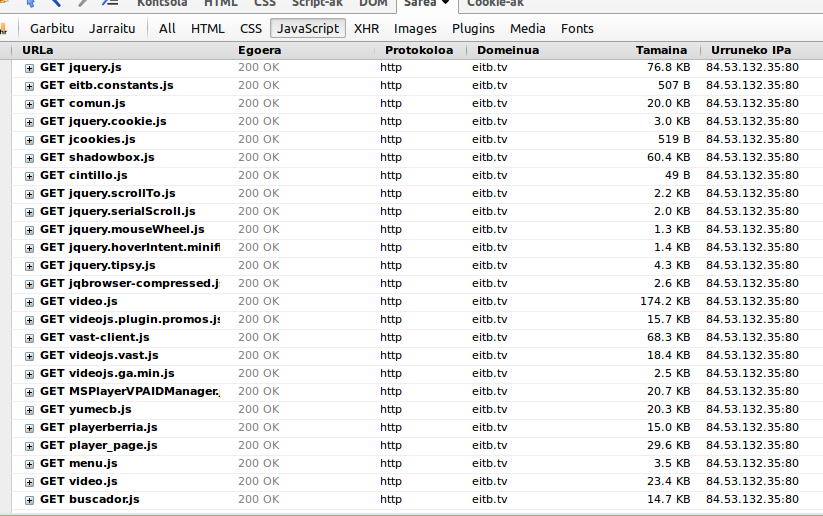 EITBren webgunetik JavaScript kodea "lapurtu" behar izan nuen,